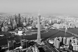 图为航拍的广州新中轴线,江心的海心沙岛即将举办一场“以珠江为舞台,城市做背景”的亚运会开幕式。 新华社发