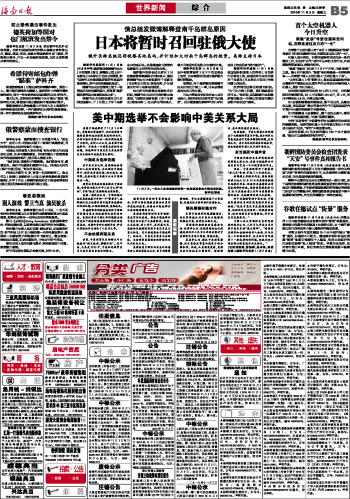 海南日报 世界新闻 013 2010-11-031 2010年11月03日 星期三