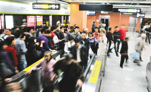 国内首条全地下城际轨道交通线路投入使用 11月3日,一位工作人员在广佛线西朗站引导乘客。 当日,国内首条全地下城际轨道交通线路———珠三角城际快速轨道交通广佛线(广州至佛山)首通段正式投入使用。广佛线首通段全长21公里,共设14个站,其中11个站在佛山境内,3个站在广州境内,全程票价6元。广佛线的开通大大方便了广州和佛山市民的出行和往来,形成一个以广州为中心的“广佛都市圈”。 新华社发
