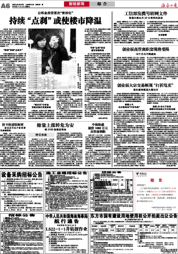 海南日报 财经新闻 006 2010-11-051 2010年11月05日 星期五