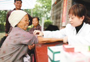 11月5日,三星(海南)光通信技术有限公司组织了70人的公益团队,向遭受强降雨灾害的海口市龙塘镇群众献爱心。该公司送去了价值10万元的生活物资,向群众提供医疗咨询,并帮助当地清理积水及垃圾。图为该企业医务人员为村民提供健康咨询。 文/本报记者高虹 图/本报记者 张杰