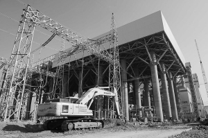 华电宁夏灵武发电有限公司二期工程百万千瓦空冷机组施工现场(11月5日摄)。 近日,华电宁夏灵武发电有限公司二期工程两台100万千瓦超超临界空冷发电机组工程建设进入冲刺阶段,3号机组预计将于2010年年底投产发电。新华社记者王鹏摄