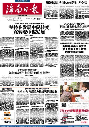 海南日报 头版 001 2010-11-061 2010年11月06日 星期六