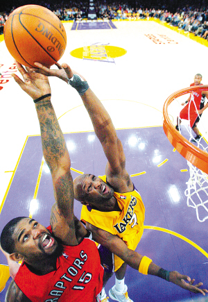 洛杉矶湖人队主场以108:103战胜多伦多猛龙队