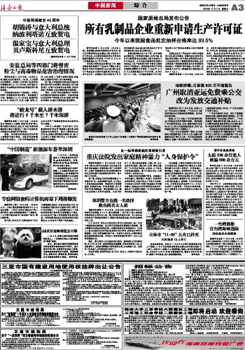 海南日报 中国新闻 003 2010-11-071 2010年11月07日 星期日