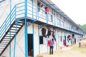 为了改善受灾群众的居住条件,在新江村的房子建好以前,文昌市赶建了50套临时过渡活动板房。活动板房建成后,陶坡小学安置点的受灾群众根据政府的分配方案住进了新“房子”,50套板房基本上满足了一户一间的要求。