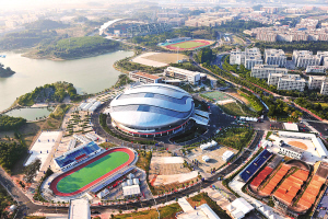 | 广州大学城集中了21个亚运场馆,占亚运场馆总量的三分之一。图为位于广州大学城的广州自行车轮滑极限运动中心。 新华社发 |
