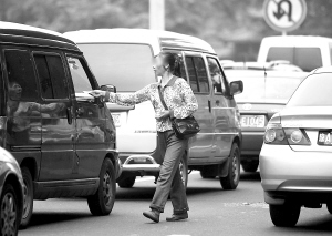 穿梭车流中逐车发名片