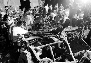 致30死150余人伤 11月11日,安全人员查看爆炸袭击事件现场。当晚,巴基斯坦最大城市卡拉奇市中心一座政府情报办公大楼遭到汽车炸弹袭击,造成至少30人死亡,其中包括12名警察,另有150多人受伤。爆炸导致大楼完全倒塌,邻近多栋建筑也严重受损,目前仍有数十人被埋在瓦砾中。 新华社/法新