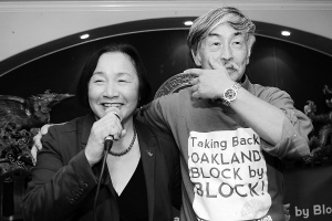 11月12日,候任华裔女市长关丽珍(左)偕丈夫发表胜选感言。 美国当地选举部门10日晚公布的计票结果显示,加利福尼亚州奥克兰市现任市议员关丽珍在该市市长竞选中得票领先对手。这意味着奥克兰市150多年来将拥有首位华裔市长和首位女性市长。今年61岁的关丽珍是在美国出生的第四代华裔移民。2003年她进入奥克兰市议会,成为该市首位亚裔市议员。 新华社发