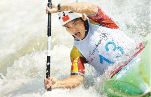 十四日,在皮划艇激流回旋男子个人皮艇比赛中,中国选手黄存光获得金牌。 本报特派记者 宋国强 摄