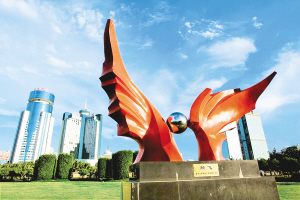 | 万绿园雕塑《腾飞》。 海南日报记者 李幸璜 摄 |