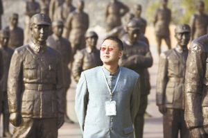 | 樊建川与建川博物馆的抗日名将雕塑在一起。 |