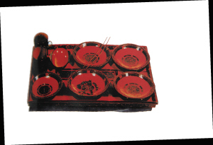 | 云纹漆案。案是用来端取食物的长方形平盘,底部书写有“軑侯家”三字。 |