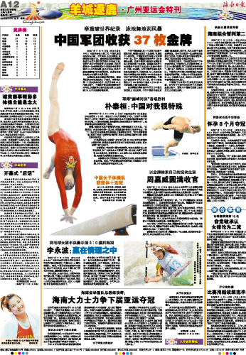 海南日报 羊城逐鹿 · 广州亚运会特刊 012 2010-11-151 2010年11月15日 星期一