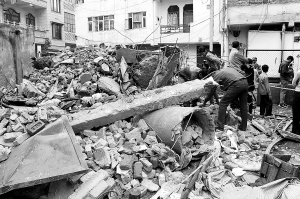 “楼房地基看似浸满了水,”新德里财政部长A·K·瓦利亚说,“这可能导致楼房倒塌。”