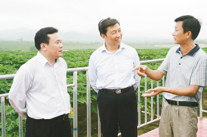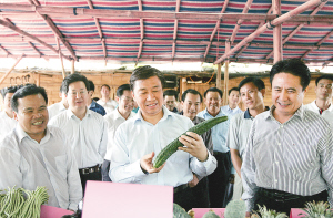 | ▲11月14日,李源潮在乐东黎族自治县黄流镇卧龙岭热带特色现代农业生产基地仔细了解瓜菜生产情况。 |