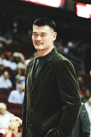 | 17日,在NBA常规赛中,火箭队主场不敌公牛队。图为姚明着便装在比赛现场为队友加油。