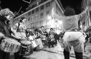 | 11月17日,抗议北约的示威者在葡萄牙首都里斯本举行游行。