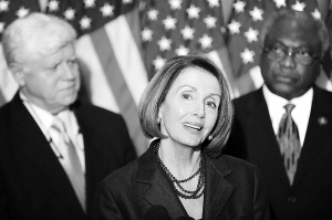 11月17日,在美国华盛顿国会山,美国国会众议院议长南希·佩洛西(中)当选新一届国会众议院民主党领袖后出席新闻发布会。当日,美国新一届国会众议院民主、共和两党选出领袖。由于民主党在中期选举中失去众议院多数党地位,佩洛西在新一届国会的职务也将由众议长变为少数党(民主党)领袖。 新华社/路透