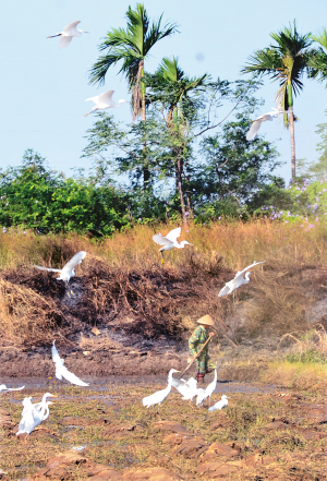 11月18日,上千只鹭鸟盘旋飞舞在三亚市荔枝沟一带的田洋中,与在田里耕作的农民和谐相处,相映成趣,呈现一幅安宁祥和的景象。 本报记者 苏建强 摄