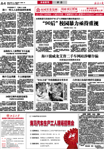 海南日报 本省新闻社会 004 2010-11-191 2010年11月19日 星期五