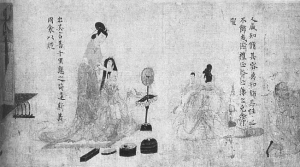 | 《女史箴图》(局部),东晋顾恺之作,唐人摹本,绢本设色,纵25厘米,横349厘米,现藏于英国伦敦的大英博物馆。 |