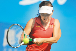 在网球女单四分之一决赛中,彭帅以2:0战胜中华台北的张凯贞进入四强。在半决赛中,彭帅将迎战日本老将伊达公子。 本报特派记者 宋国强 摄