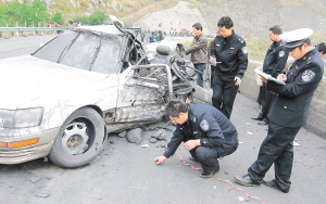 11月23日,贵州水(城)黄(果树)高等级公路109公里+900米处发生一起特大交通事故,造成3人当场死亡,1人在医院抢救无效死亡,另有3人受伤。目前,事故原因在调查中。 新华社记者 杨楹 摄