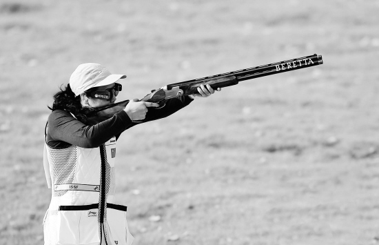 在今天进行的女子飞碟双向比赛中,42岁的名将张山与队友合作夺得团体冠军。张山成为唯一一名征战北京和广州两届在中国举行的亚运会的运动员,而且两次亚运会都夺得金牌。“生命不息,射击不止。”张山赛后说。 “我能够回来就是成功。”张山已不是当年那个二十出头的女孩,岁月的风霜已染白了她的鬓角。比赛中,她尽量地去享受自己的每一枪。 “我不是重温金牌