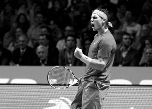 23日,在ATP世界巡回赛总决赛小组赛中,纳达尔以2:1击败罗迪克。 新华社发
