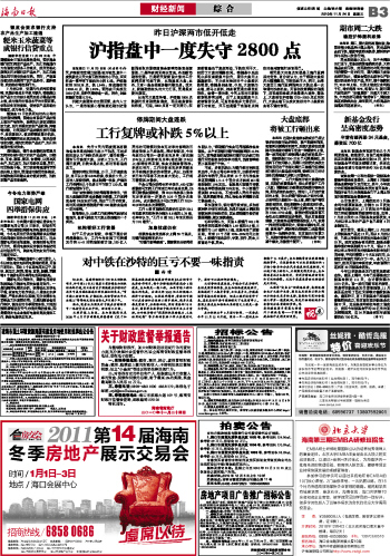海南日报 财经新闻 011 2010-11-241 2010年11月24日 星期三