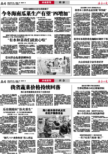 海南日报 本省新闻 004 2010-11-241 2010年11月24日 星期三