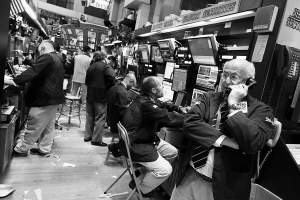 11月23日,交易员在美国纽约证券交易所内工作。 当天,受朝鲜半岛局势和爱尔兰债务问题等因素影响,纽约股市走低,三大指数跌幅均超过1%。 新华社/路透