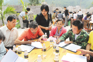 | 11月25日,白沙黎族自治县元门乡罗帅村村民签约加盟天涯驿站。 本报记者 苏晓杰 摄 |