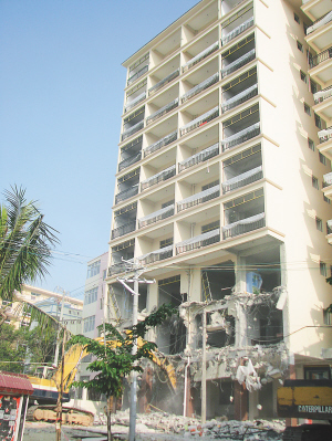 10月15日,三亚市“铁锤行动”联合执法队到该村调查时,这栋违建才刚封顶。执法人员随即向业主下达了立即停工的通知,并劝其自行拆除。但该业主非但不听劝告,而且在执法人员眼皮底下,一意孤行,继续投入100多万元,对这栋“黑楼”进行装修。