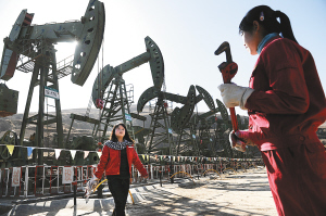 11月25日,吴起采油厂田百户区队职工在巡护油井。 当日,陕西省延长石油集团吴起采油厂原油年产量达到200.18万吨,跨入全国200万吨生产规模10大采油厂行列。 新华社记者 陶明 摄