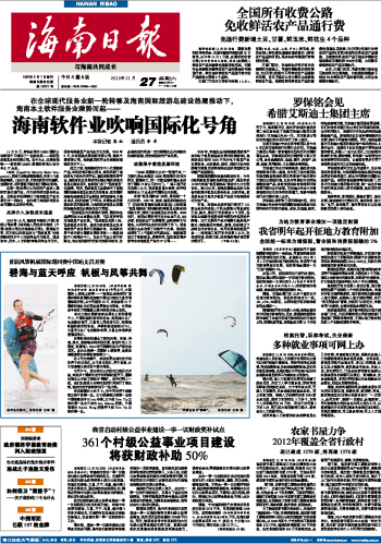 海南日报 头版 001 2010-11-271 2010年11月27日 星期六