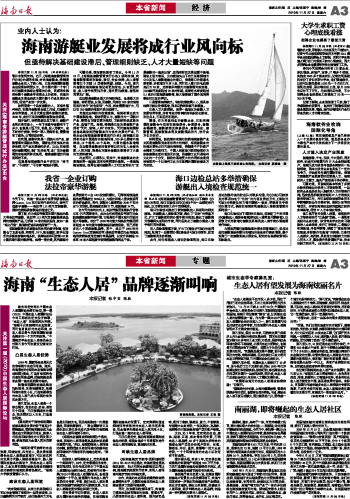 海南日报 本省新闻 经 济 003 2010-11-271 2010年11月27日 星期六