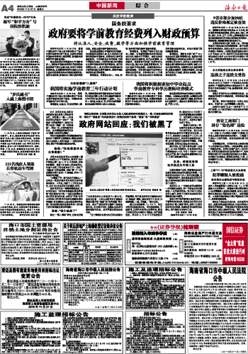 海南日报 中国新闻 综 合 004 2010-11-271 2010年11月27日 星期六