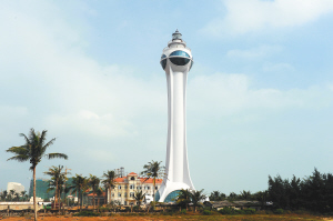 由交通部投资1200多万元建设的海南海事局博鳌海事航标中心灯塔近日竣工。该灯塔主体高71.1米,总高度79.4米,圆柱形结构,最大直径38.50米,最小6米,为目前亚洲最高航标灯塔,可接收22海里船只信号,顶端还可作为旅游观光台。该灯塔于2008年4月动工建设,它的落成不仅对南海渔业生产安全发挥重要作用,还将成为标志性航标,为博鳌旅游增添新的景观。 特约记者 蒙钟德 摄
