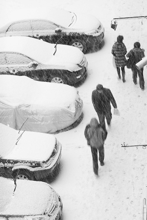 27日,“冰城”哈尔滨迎来大面积降雪。尽管各方全力以赴组织清雪,但由于持续降雪,机场被迫关闭近2小时,导致进出港15个航班受到不同程度的影响;哈尔滨至同江高速路在27日19时左右被迫关闭,预计于28日8时左右开放。图为哈尔滨市民在风雪中艰难行走。 新华社发(陈维奇 摄)