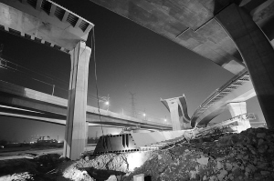 这是11月26日拍摄的事故现场。 11月26日21时左右, 位于南京市雨花台区小行附近的南京城市快速内环公路西线南延建设工地四标段发生一起严重事故。一处正在建设的钢箱梁防撞墙在施工过程中,钢箱梁发生侧翻。当场造成施工人员7人死亡,3人受伤。 新华社记者 孙参 摄