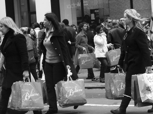 每年11月和12月本就是美国的传统购物旺季,“黑色星期五”更是美国人一年中购物最疯狂的日子。“黑色星期五”的由来有多种说法,其中一种就是指黑压压的一片人在感恩节后的星期五去商场排长队购物。当然,在英文中,与用红色表示的赤字相反,黑色表示商家盈利。