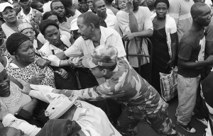 11月26日,警察和工作人员在多米尼加共和国西部达哈邦边境口岸维持秩序。 当天,多米尼加边境市场开放,众多海地居民进入该农贸市场进行买卖活动。多米尼加方面采取多种防疫措施,防止霍乱疫情传入。 新华社发(奥内略·多明格斯摄)