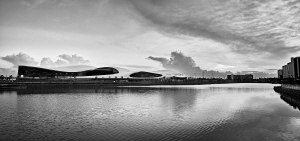 | 远远望去,广州亚运馆如同一道飘逸的彩带。 |