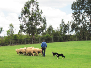 | 草地上,牧羊犬帮主人管理着羊群 |