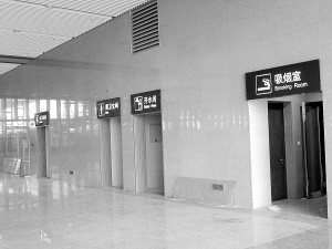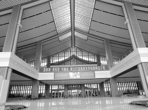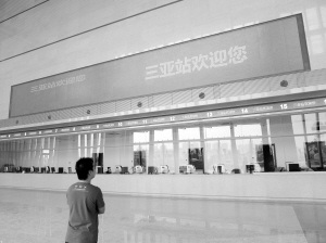 东环铁路三亚站站房建设及装修工程已经基本完成,一座极具动感的现代化火车站呈现在人们面前。近日,经现场管理人员许可,记者进入已封闭管理的东环铁路三亚站站房先睹为快。 图①:从外观看,三亚站站房就像一只展翅翱翔的巨大海鸥,充满动感。图②:候车大厅里的电动扶梯。图③:整齐划一的售票窗口。图④:宽敞明亮的候车大厅。图⑤:候车室内的卫生间、开水间和吸烟室。 本报记者 卓上雄 摄