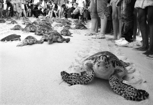 哥伦比亚放生一批绿海龟和玳瑁