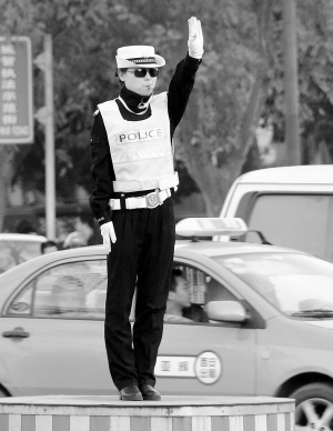 11月29日,一名女交警在西安西华门十字路口指挥交通。 近日,西安市针对市民反映强烈的城市交通拥堵问题,组织园林、规划、交通、市政等部门研究方案,多部门联动治理城市拥堵现象。 新华社记者 焦卫平 摄